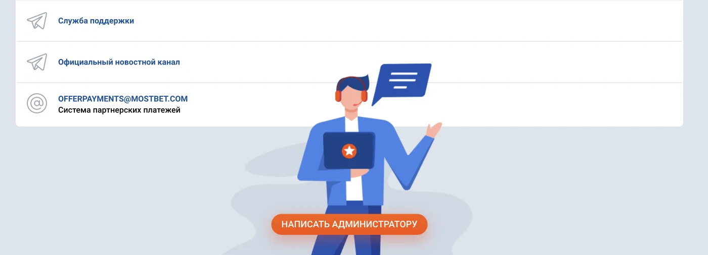 Мостбет БК придает большое значение обратной связи и готова помочь своим клиентам в любой момент. Для удобства пользователей предусмотрено несколько способов связи с командой поддержки, что гарантирует быстрое решение любых вопросов.